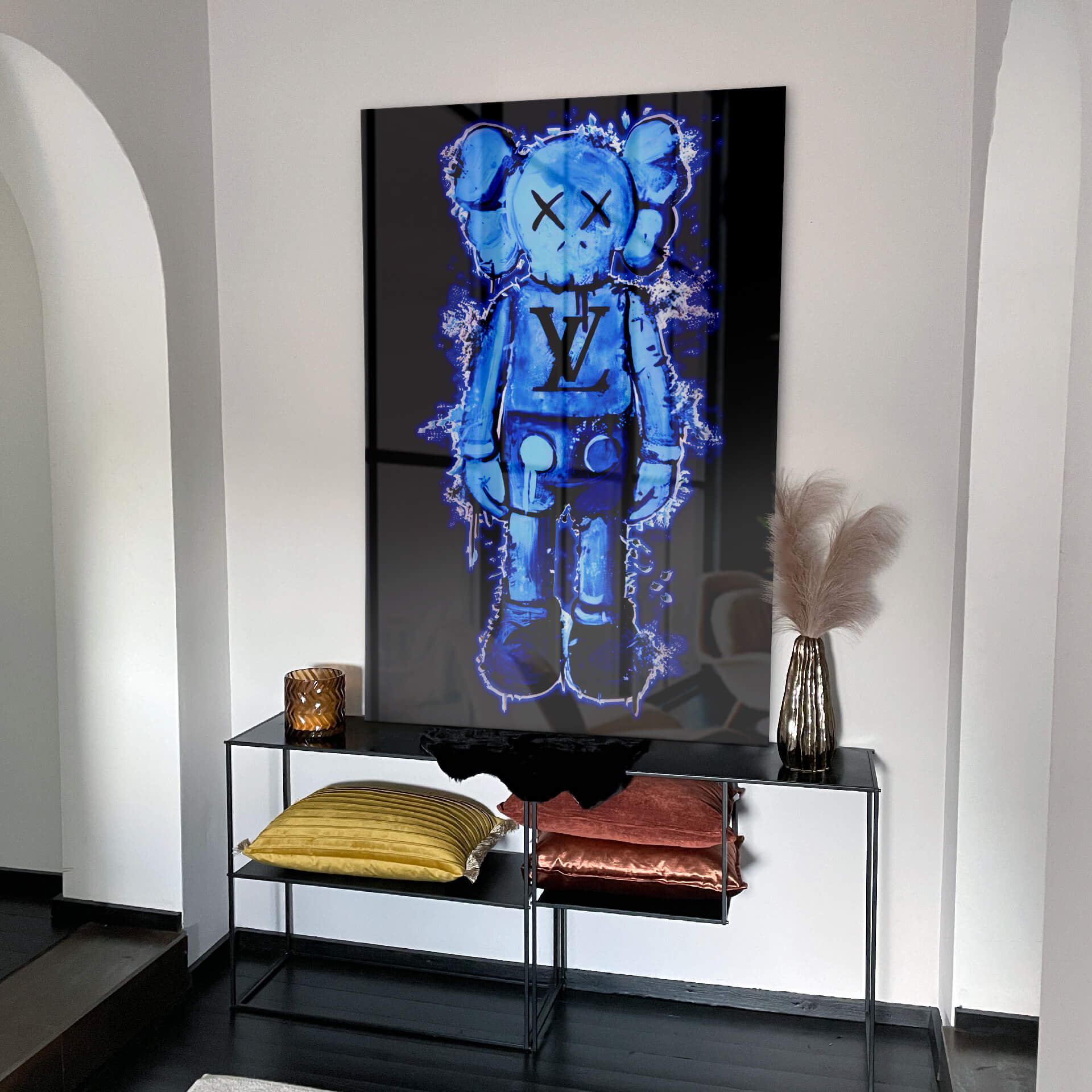 Alla känner till de ikoniska Kaws-figurerna; Nuförtiden finns de populära figurerna i alla former och storlekar. Här ingår även den blå varianten med den välkända LV-loggan. Figuren är designad på ett unikt sätt med ett karakteristiskt färgmönster som är tydligt i alla designs i denna kollektion. Denna produkt finns även i paketvarianter och med olika typer av bakgrunder. Detta gör designen lätt att kombinera med någon av de andra Kaws-figurerna.