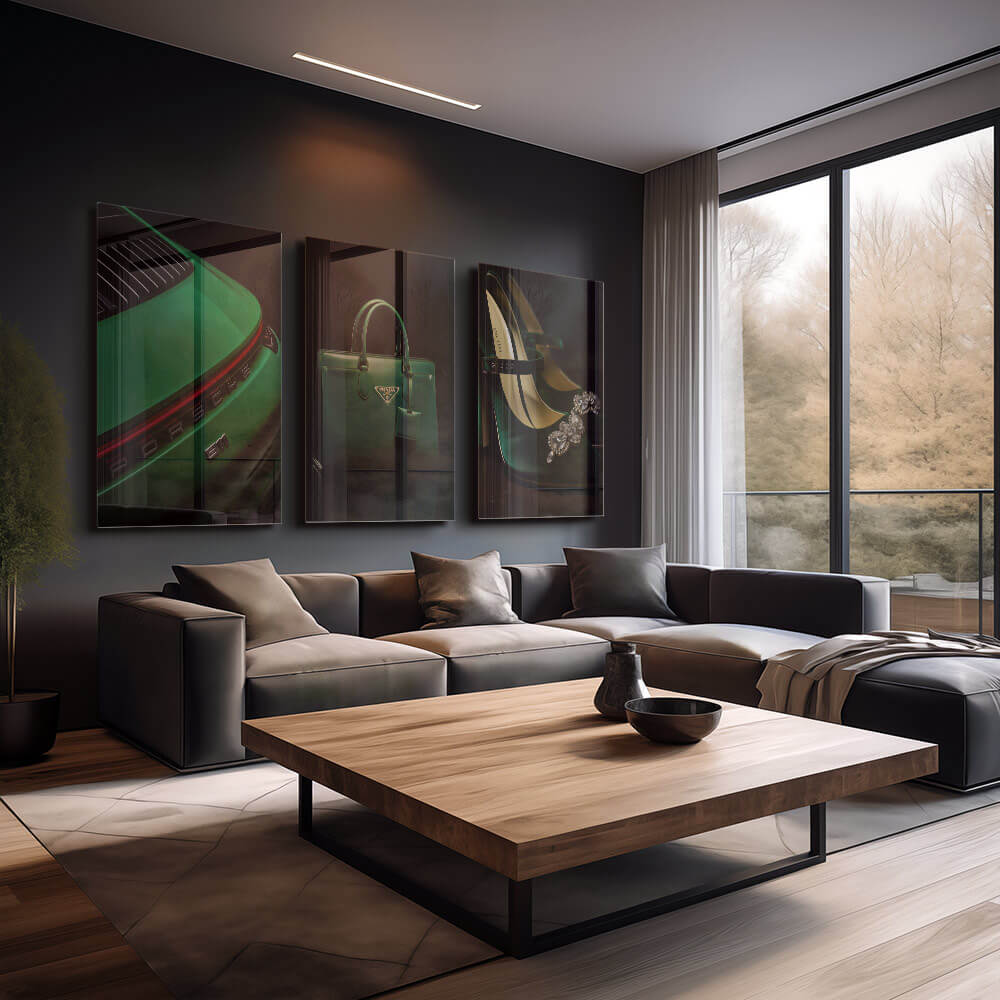 Vår glaskollektion är tillverkad av härdat glas och är den mest lyxiga kollektionen i vårt sortiment av målningar. En stor fördel med härdat glas är att det inte är känsligt för UV-strålning, vilket innebär att glaset inte missfärgas. Dessutom är det mer reptåligt och ger en vackrare ljusreflektion. Härdat glas är också mer värmetåligt och behåller sin form jämfört med plexiglas.