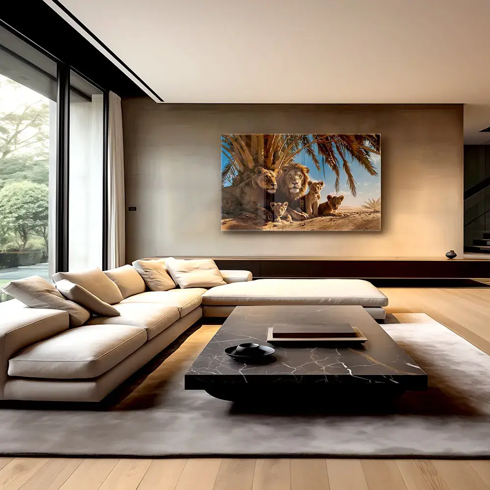 I "Lionheart Kin III" utstrålar de ungdomliga lejonen styrka och lekfullhet. Perfekt för att föra in värmen från naturen i ditt utrymme. Ett konstverk fullt av liv och elegans.