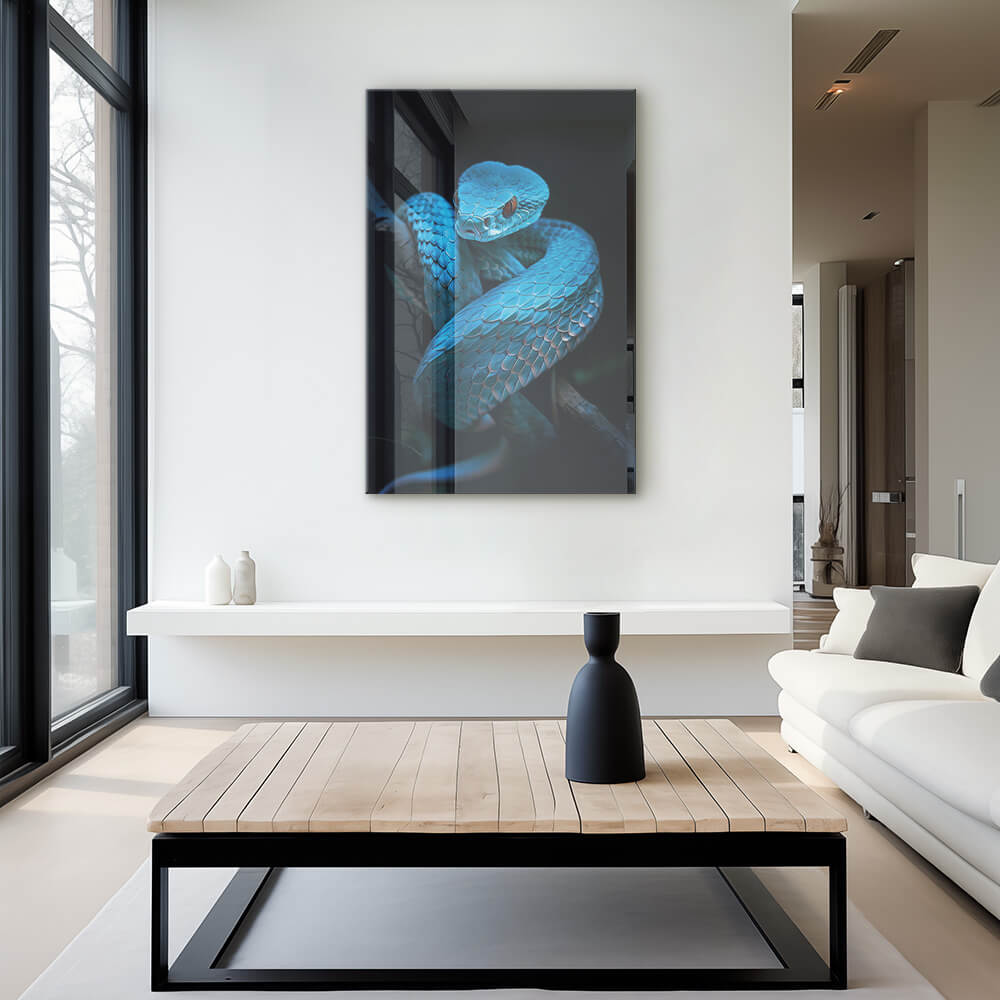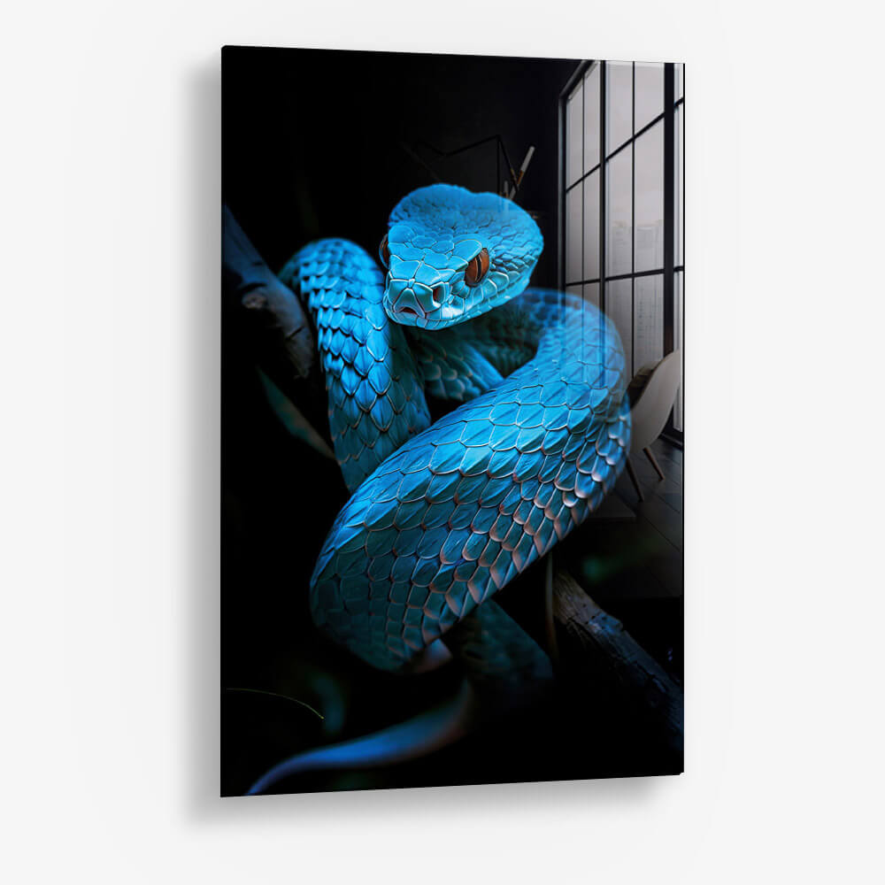 Den hypnotiska skönheten i „Sapphire Snake“ fångar mystik och kraft. De skimrande blå fjällen skapar en dramatisk kontrast. Perfekt för en djärv och elegant inredning.